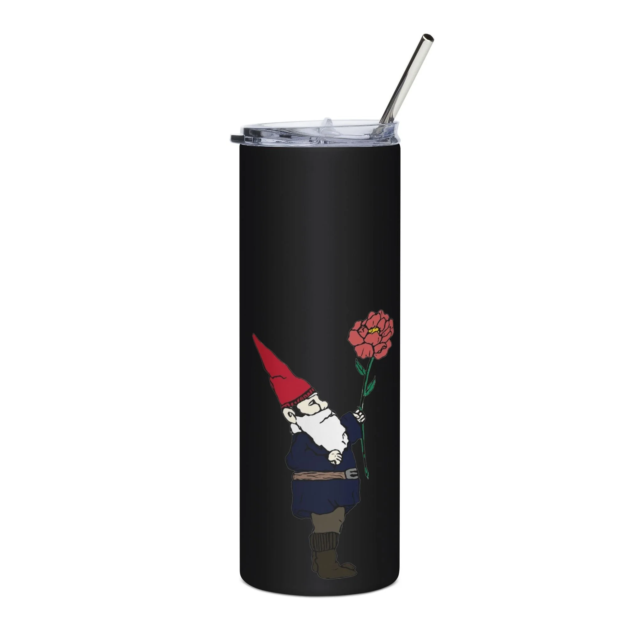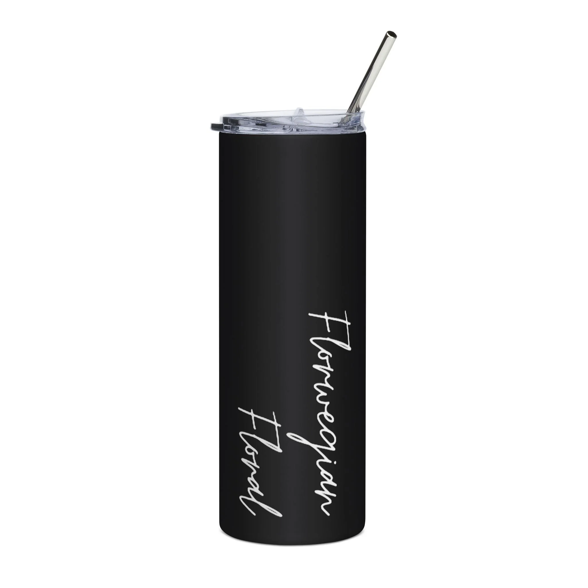 Slim, black stainless steel tumbler that feels like a quiet statement in your hand. The tall 20 oz cylinder slips into cup holders and backpacks with ease. A glossy protective varnish catches light while the matte-black base keeps the look grounded. The design wraps fully around the cup use it for long commutes, studio sessions, or slow mornings when you want something both minimal and expressive. The clear lid and included straw make sipping effortless on the go; the durable steel body stands up to daily use without rusting or fading. This tumbler becomes part of your routine: steady, quiet, and a little artful.